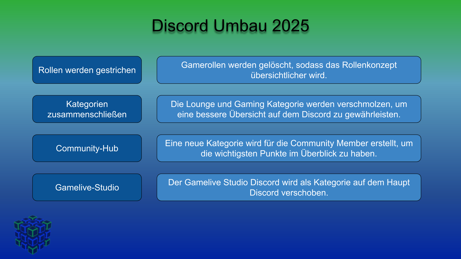 Um weiter Zukunftsorientiert zu blicken, bauen wir aktuell den Discord Server um, für eine bessere Übersichtlichkeit und um natürlich mehr Funktionen anbieten zu können. Die wichtigesten Punkte könnt ihr jetzt schon aus der Roadmap 2025 sehen. 2026 wird es aber fleißig weiter gehen. Dazu kommen später weitere Informationen.